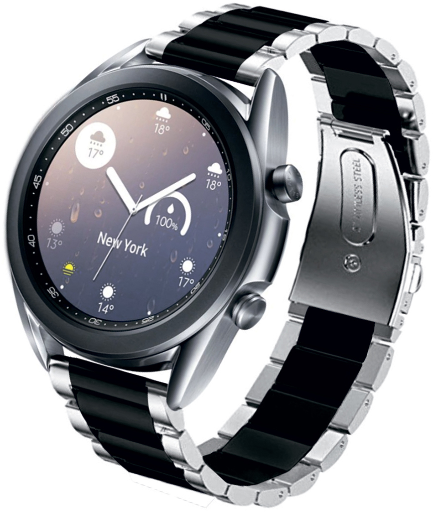 Ремешок для умных часов выполнен из металла (нержавеющая сталь) и подходит под различные модели умных часов разных брендов. Материал позволяет ремешку долго оставаться в первозданном виде. Удобный и легкий ремешок оснащен удобной металлической застежкой для крепления на руке.
