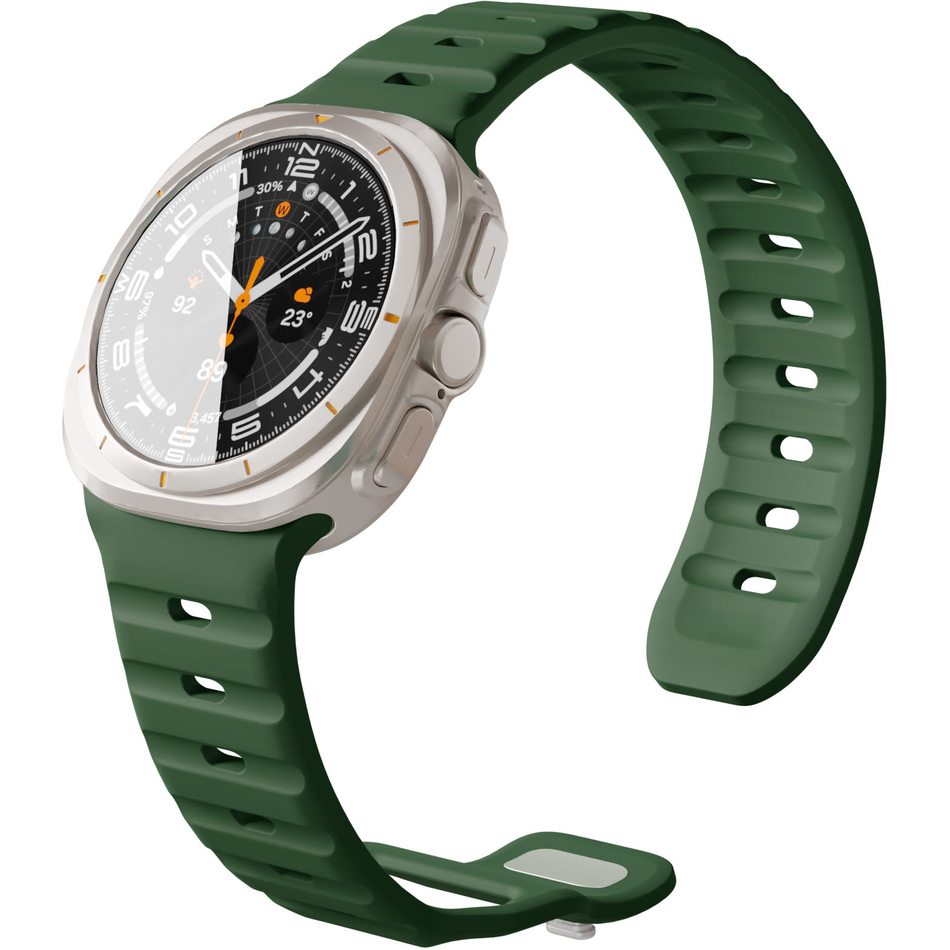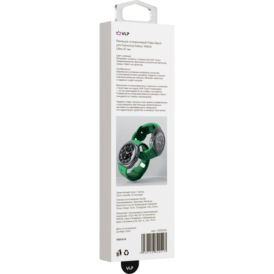 Ремешок VLP для смарт-часов Samsung Watch Ultra 47 мм сочетает комфорт, надёжность, качество и лаконичный дизайн. Гладкий и лёгкий сменный ремешок изящно облегает запястье. Он выполнен из качественного и прочного силикона с приятным на ощупь покрытием софт-тач — он не заламывается на сгибах и не рвётся. Поверхность материала влагоустойчива и легко очищается от загрязнений. Длина ремешка универсальна и регулируется при помощи металлических застёжек из нержавеющего металла.