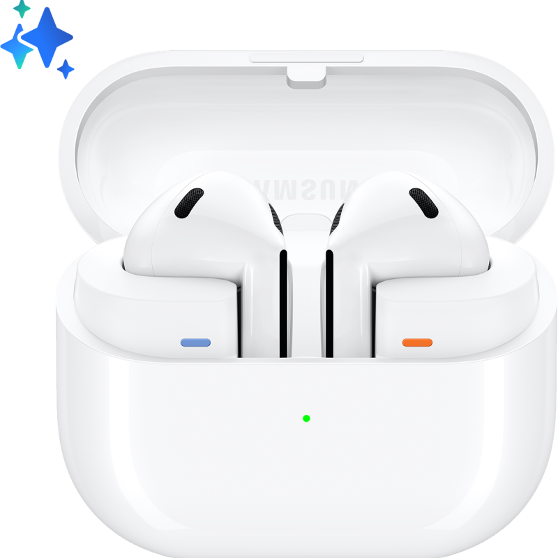 Внутриканальные наушники с исключительной передачей качества звука (24 бит/96 кГц, двухполосная акустика, двойной усилитель), с поддержкой интеллектуального шумоподавления и с широким набором интеллектуальных функций (Galaxy AI, оптимизация звука в зависимости от посадки и окружающей среды, режим автоматического определения голоса)