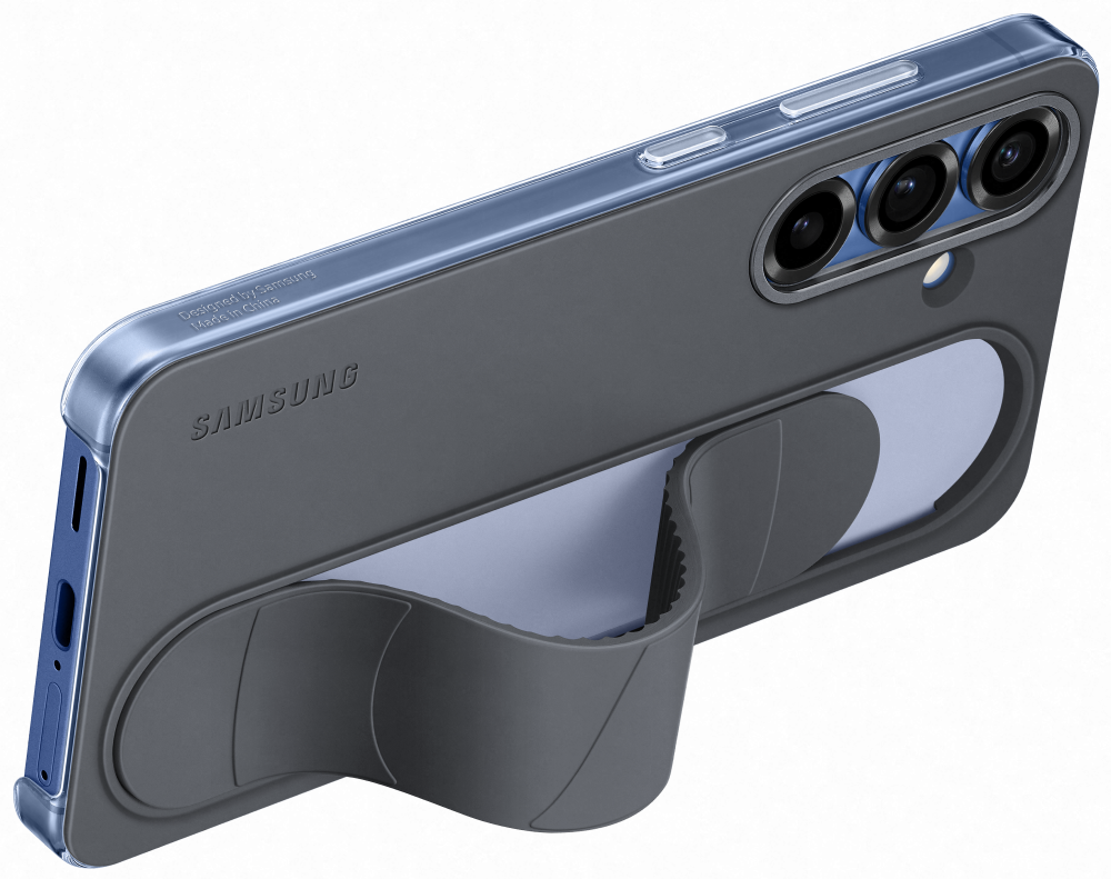 с приятной текстурой и выдвижной подставкой для смартфона.