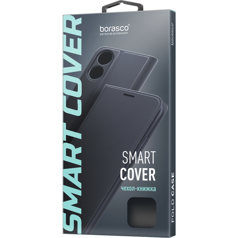 Внешняя поверхность чехла-книжки BoraSCO Smart Cover изготовлена из мягкой искусственной кожи с эффектом Soft-touch, а «ванночка» сделана из силикона. Для надёжной фиксации крышки предусмотрен встроенный магнит. Чехол может служить подставкой и имеет кармашек для пластиковых карт.