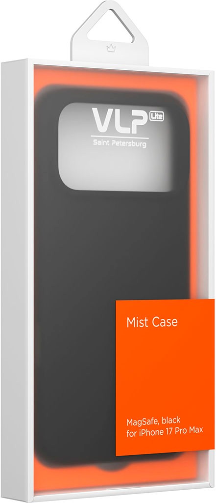 Клип-кейс VLP Lite Mist Cas изготовлен из жидкого силикона с покрытием софт-тач, которое предотвращает скольжение в руке. Внутри — бархатистая микрофибра, которая защищает заднюю панель смартфона от царапин. Чехол повторяет контуры корпуса, а благодаря плотному прилеганию под него не попадает пыль. Аксессуар имеет специальные защитные рамки — над дисплеем и блоком объективов камеры. Модель поддерживает технологию MagSafe.