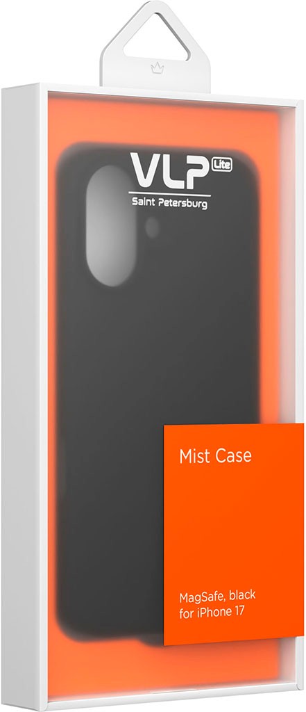 Клип-кейс VLP Lite Mist Cas изготовлен из жидкого силикона с покрытием софт-тач, которое предотвращает скольжение в руке. Внутри — бархатистая микрофибра, которая защищает заднюю панель смартфона от царапин. Чехол повторяет контуры корпуса, а благодаря плотному прилеганию под него не попадает пыль. Аксессуар имеет специальные защитные рамки — над дисплеем и блоком объективов камеры. Модель поддерживает технологию MagSafe.