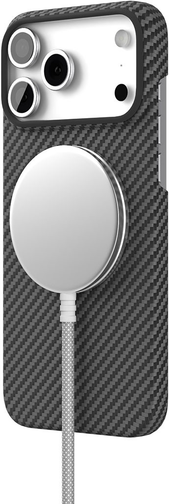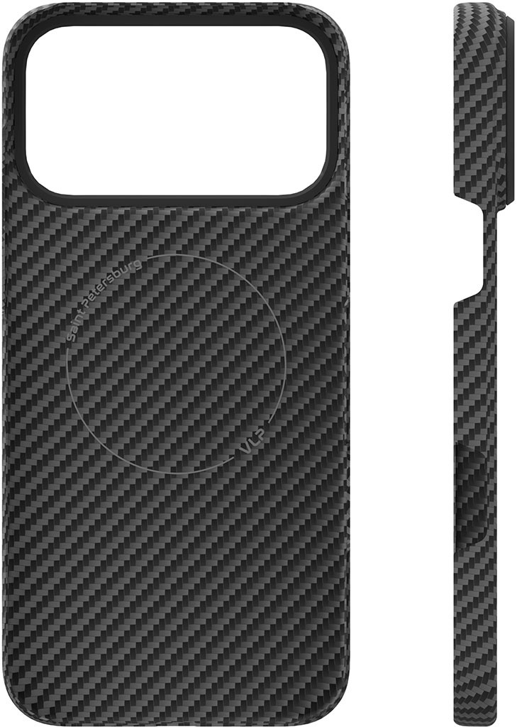 Клип-кейс VLP Kevlar Case — ультратонкая модель из настоящего арамидного волокна кевлара с поддержкой MagSafe. Чехол практически сливается с устройством, специальные вырезы под кнопки обеспечивают комфортное управление, а дополнительная рамка во круг блока объективов камеры защитит их от повреждений. Аксессуар состоит из двух частей и защищает смартфон со всех сторон.