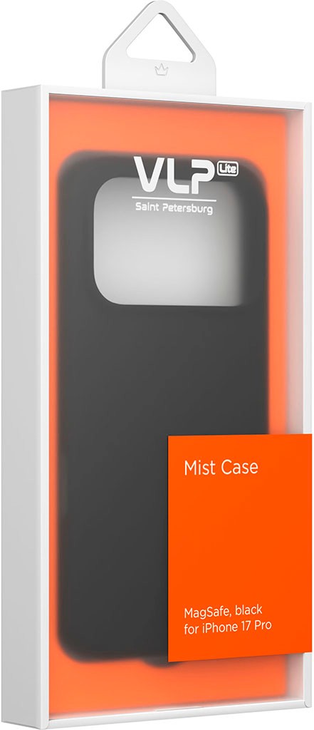 Клип-кейс VLP Lite Mist Cas изготовлен из жидкого силикона с покрытием софт-тач, которое предотвращает скольжение в руке. Внутри — бархатистая микрофибра, которая защищает заднюю панель смартфона от царапин. Чехол повторяет контуры корпуса, а благодаря плотному прилеганию под него не попадает пыль. Аксессуар имеет специальные защитные рамки — над дисплеем и блоком объективов камеры. Модель поддерживает технологию MagSafe.