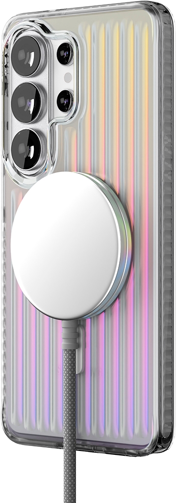 Клип-кейс VLP Pulse Case для смартфона Samsung Galaxy S26 Ultra — противоударная модель с эффектным голографическим покрытием, которое переливается на свету. Поддержка MagSafe обеспечивает удобное подключение магнитных аксессуаров и быструю зарядку. Защита от ударов обеспечивается усиленными бортами и специальным материалом, который смягчает удары при падении.