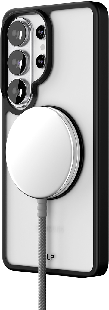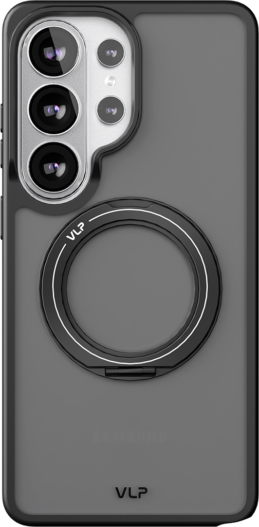 Задняя поверхность клип-кейса VLP Ring Case выполнена из прочного поликарбоната, а бампер из термопластичного полиуретана — аксессуар точно повторяет контуры смартфона Samsung Galaxy S26 Ultra и плотно прилегает к нему. В дизайне использованы металлические элементы — кнопки и рамка вокруг объективов камеры.Чехол поддерживает технологию MagSafe — его магниты совпадают с магнитами на задней панели смартфона и обеспечивают быструю беспроводную зарядку.