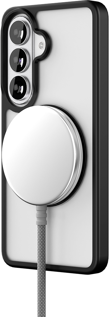 Задняя поверхность клип-кейса VLP Ring Case выполнена из прочного поликарбоната, а бампер из термопластичного полиуретана — аксессуар точно повторяет контуры смартфона Samsung Galaxy S26 и плотно прилегает к нему. В дизайне использованы металлические элементы — кнопки и рамка вокруг объективов камеры.Чехол поддерживает технологию MagSafe — его магниты совпадают с магнитами на задней панели смартфона и обеспечивают быструю беспроводную зарядку.