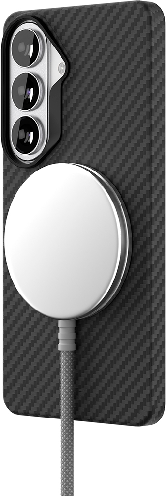 Клип-кейс VLP Kevlar Case с поддержкой беспроводной зарядки и крепления аксессуаров MagSafe — износостойкий защитный чехол для Samsung Galaxy S26 из настоящего арамидного волокна кевлара, который известен высокой прочностью и стильным паттерном. Ультратонкий и лёгкий аксессуар практически не ощущается на смартфоне и не увеличивает габариты его корпуса, а дополнительная рамка во круг блока объективов камеры защищает их от повреждений.