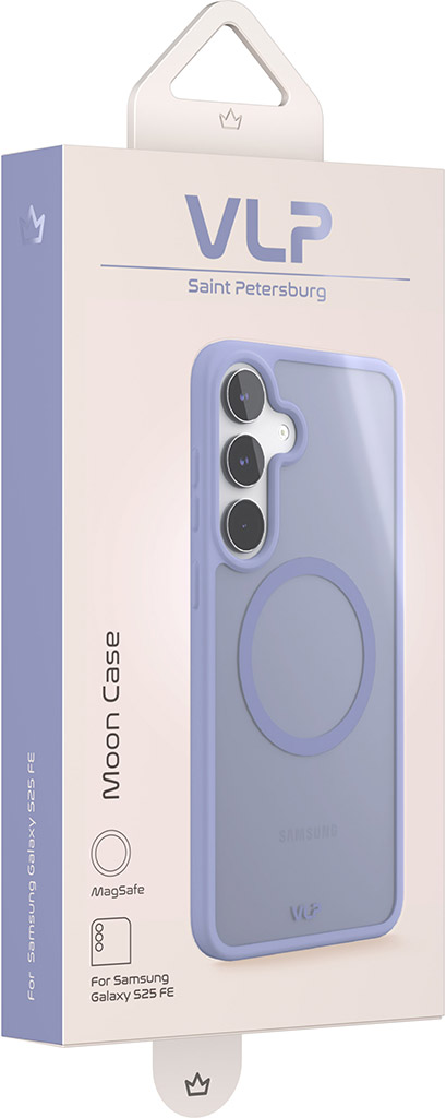 Клип-кейс VLP Moon Case — матовый полупрозрачный чехол для смартфона Samsung Galaxy S25 FE выполнен с применением бесшовной технологии. Он имеет защиту от отпечатков пальцев, не скользит в руках и поддерживает MagSafe. Специальные рамки над дисплеем и блоком объективов камер защищают стёкла от царапин и сколов. Внутренняя текстура торцов чехла эффективно амортизирует удары.