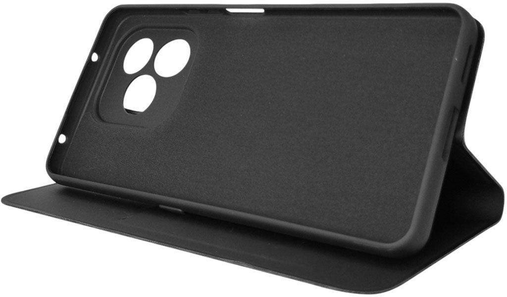 Внешняя поверхность чехла-книжки BoraSCO Smart Cover для смартфона (HONOR X8d изготовлена из мягкой искусственной кожи, а «ванночка» сделана из силикона. Для надёжной фиксации крышки предусмотрен встроенный магнит. Чехол может служить подставкой и имеет кармашек для пластиковых карт.