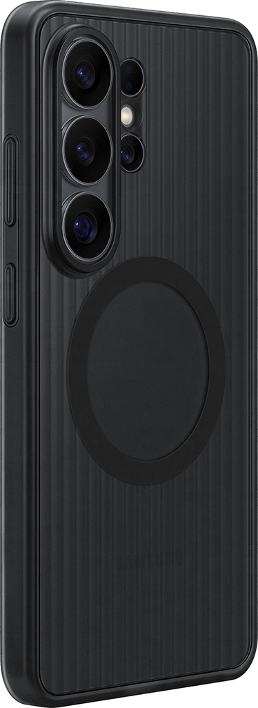 Клип-кейс Samsung Rugged Magnet (Раггет Магнет) прошел испытания в соответствии со стандартами MIL-STD-810H и выдерживает падения с высоты до 1,2 метра. Его конструкция и текстура обеспечивают эффективную защиту и надёжный хват. Приподнятые борты помогают защитить экран и объективы камеры, а мягкий внутренний слой создает дополнительную амортизацию. Встроенные магниты способствуют правильному позиционированию смартфона для беспроводной зарядки и позволяют легко крепить совместимые магнитные аксессуары.