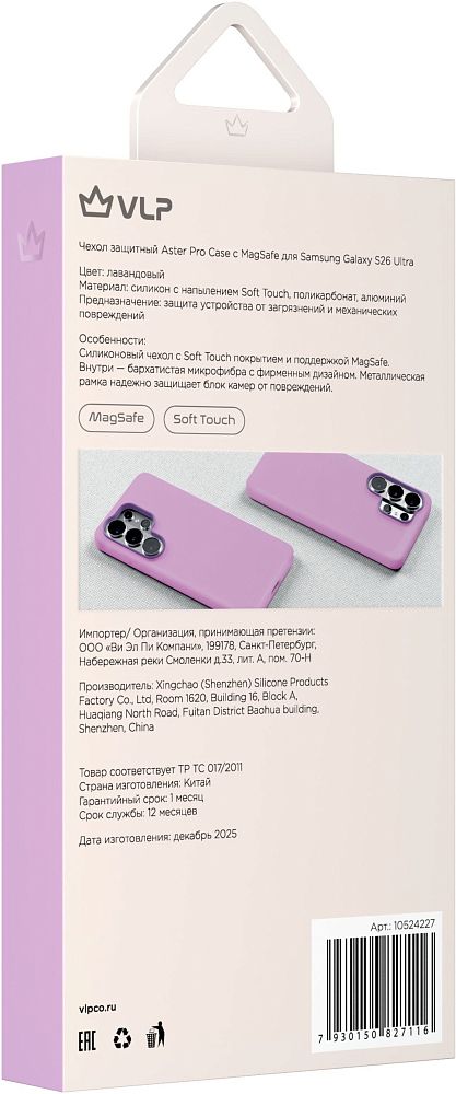 Модель:Aster Pro Case MagSafe для Galaxy S26 Ultra, силикон лавандовый