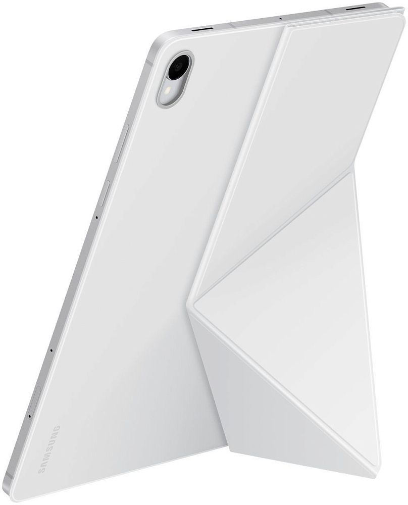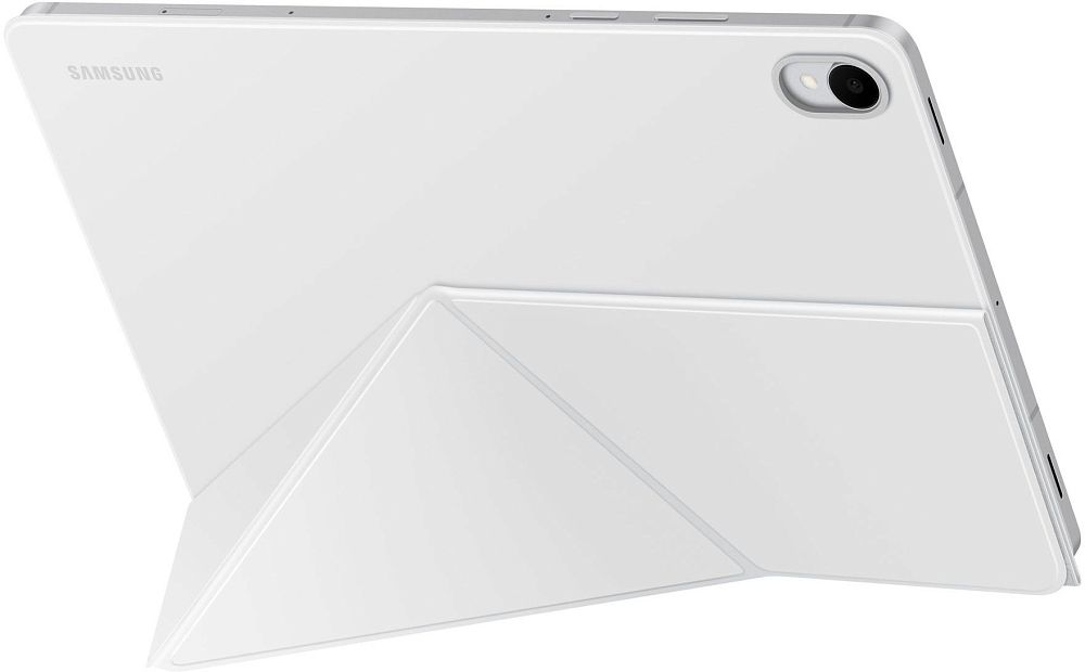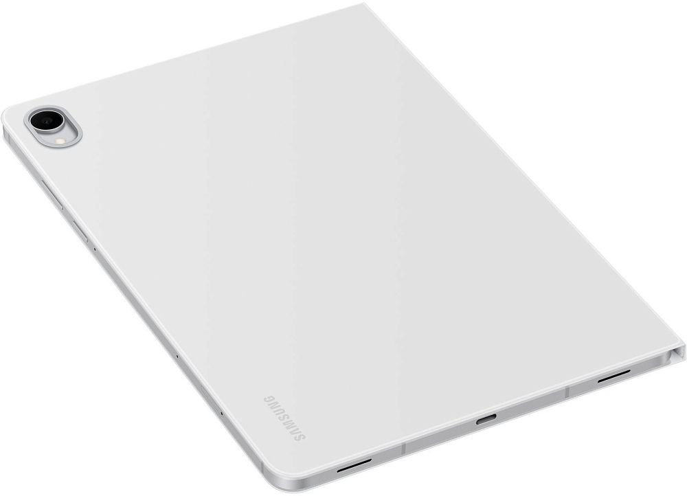 Небольшой вес. Большие возможности Тонкий чехол Book Cover защищает Galaxy Tab S11 от падений и выскальзывания. Благодаря тонкому чехлу планшет удобно носить с собой и использовать как для работы, так и для чтения и просмотра веб-страниц в дороге. Он легко крепится с помощью магнита. Два положения планшета в одном чехле С чехлом Book Cover планшет можно установить горизонтально и вертикально. Передняя крышка складывается и выполняет функцию подставки, создавая устойчивую основу, которая удерживает экран под выбранным углом. Гладкая поверхность внутри и снаружи Чехол Book Cover преобразит внешний вид вашего планшета благодаря металлической окантовке вокруг камеры. Внутренняя поверхность чехла покрыта мягкой микрофиброй, которая защищает планшет от пятен и царапин.
