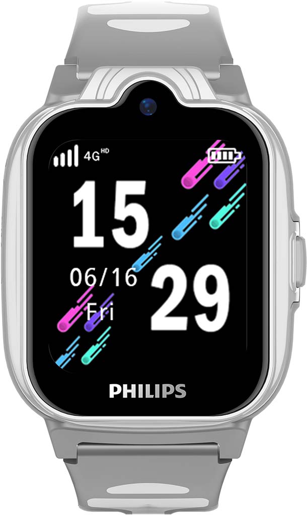 Детские смарт-часы Philips W6610 поддерживают стандарты связи от 2G до 4G LTE / VoLTE и позиционирование GPS, A-GPS, LBS, Wi-Fi. Модель совместима с операционными системами Android и iOS, имеет степень защиты от влаги IP67. Часы могут похвастаться 1,69-дюймовым экраном с матрицей IPS, компактным размером и весом 53 грамма. Для звонков и максимального использования возможных функций в часы нужно установить сим-карту: юному владельцу понравится пользоваться шагомером и телефонной книгой, как у взрослых.