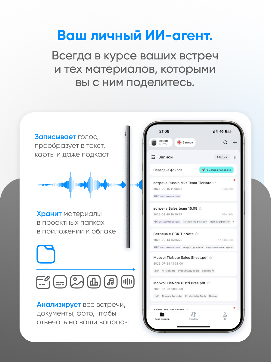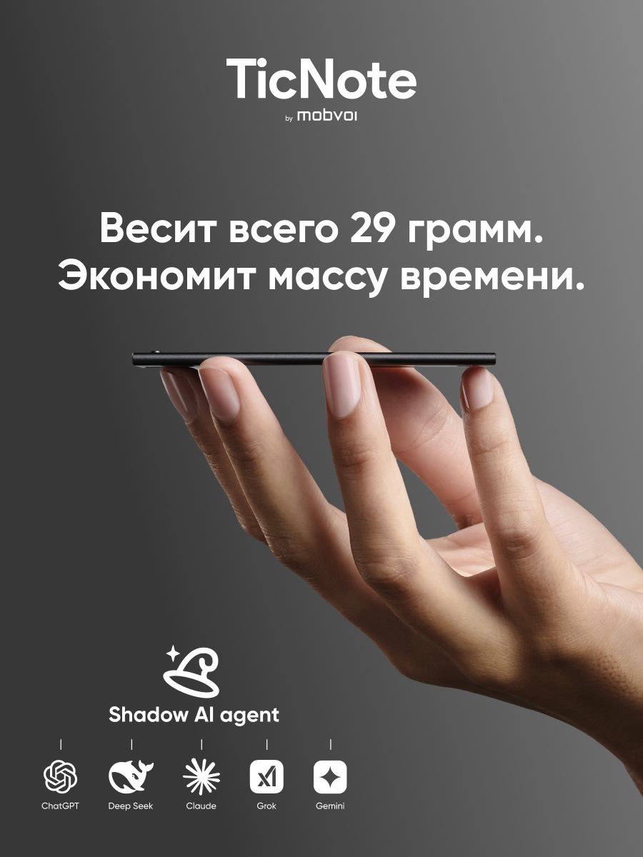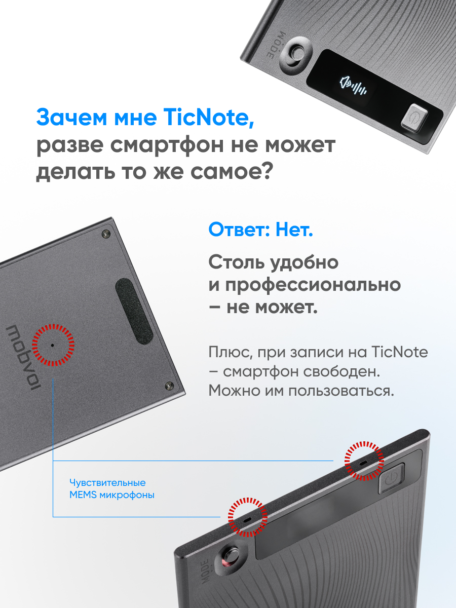Диктофон Mobvoi TicNote с ИИ 64 ГБ Cерый Диктофоны билайн | V4.Ru: Маркетплейс