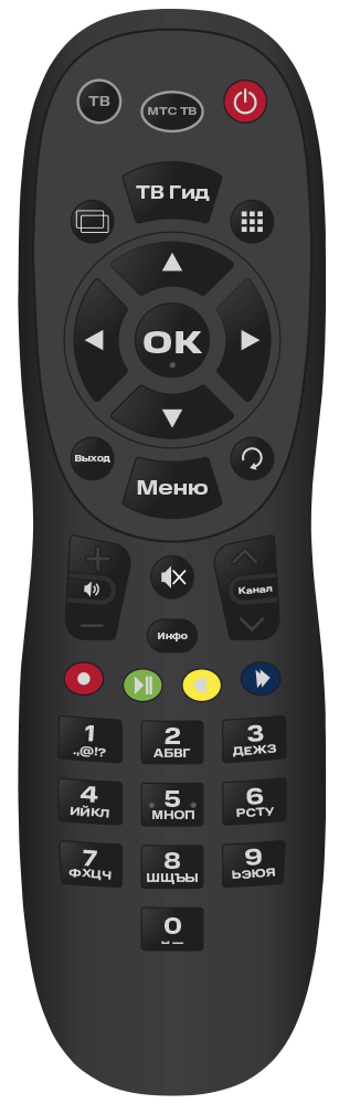 с логотипом МТС — универсальный гаджет для медиацентров IPTV. Пульт отличается превосходной эргономикой, удобными кнопками с приятным тактильным откликом и качественным исполнением. Устройство поддерживает управление основными функциями телевизора: выбор каналов, переключение громкости, пуск, пауза, перемотка и прочее.