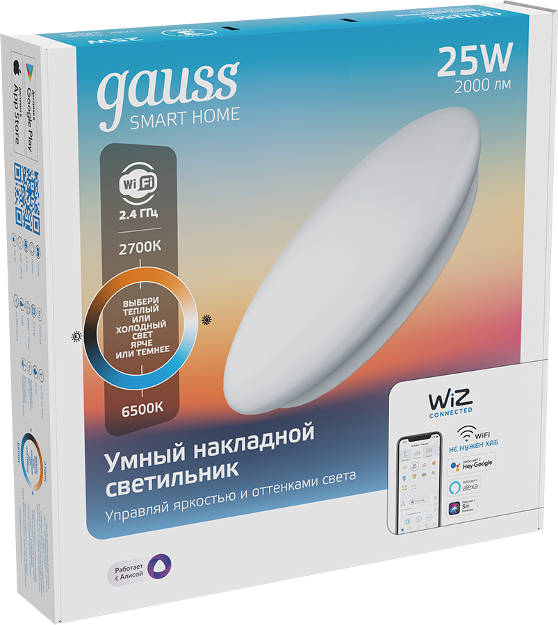 Умный светильник Gauss Smart Home CL DIM CCT 35 Вт 2700-6500K, диммируемый с изменением температуры, управление голосом/смартфоном. Дистанционное управление: управляйте светом через мобильное приложение или голосовой помощник (Алиса, Siri, Google, Маруся). Установка расписаний: автоматизируйте пространство. Свет будет включаться и выключаться по вашему расписанию. Режимы: режимы созданы в Париже специалистами по световым решениям.