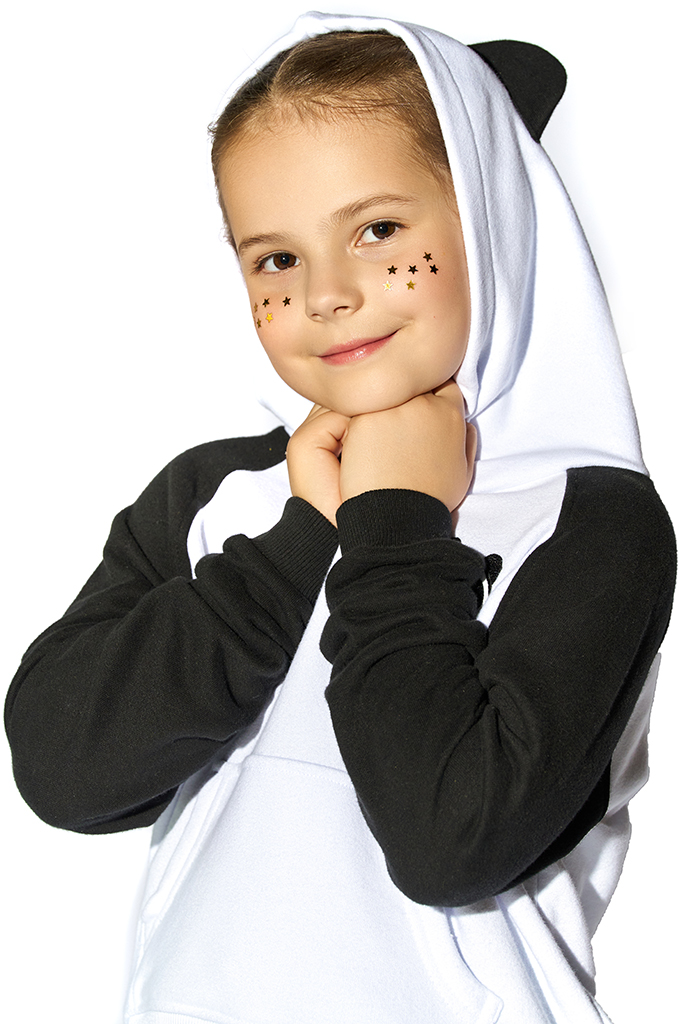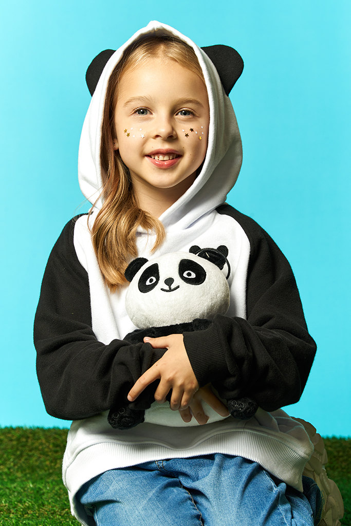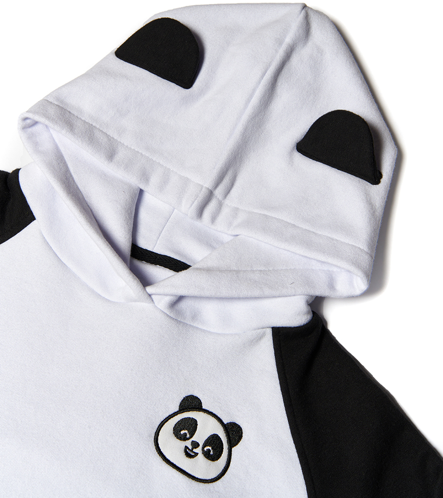Милое детское худи с капюшоном и вышитым принтом с пандой Тапой станет эффектным элементом образа ребёнка, а ушки панды на капюшоне сделают его любимой вещью в гардеробе. Свободный крой не сковывает движения, а спереди расположен удобный карман. Материал изделия — футер трёхнитка без начёса.