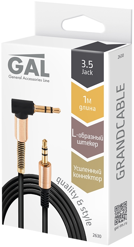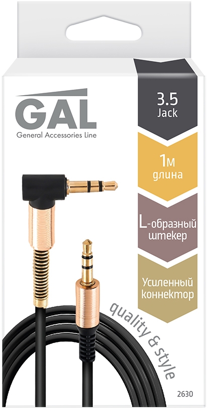 Кабель GAL со штекерами 3,5 мм обеспечивает соединение аналоговых ТВ и аудиоустройств, качественную передачу сигнала. Максимальное напряжение — до 36 В. Длина кабеля — 1 метр.