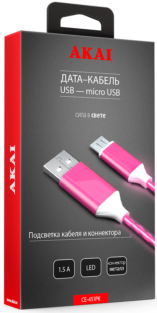 Кабель для зарядки планшетов и смартфонов с разъёмом microUSB, током до 1,5 А и передачи данных до 480 Мбит/с. Коннекторы металлические, подсветка по всей длине светодиодная.