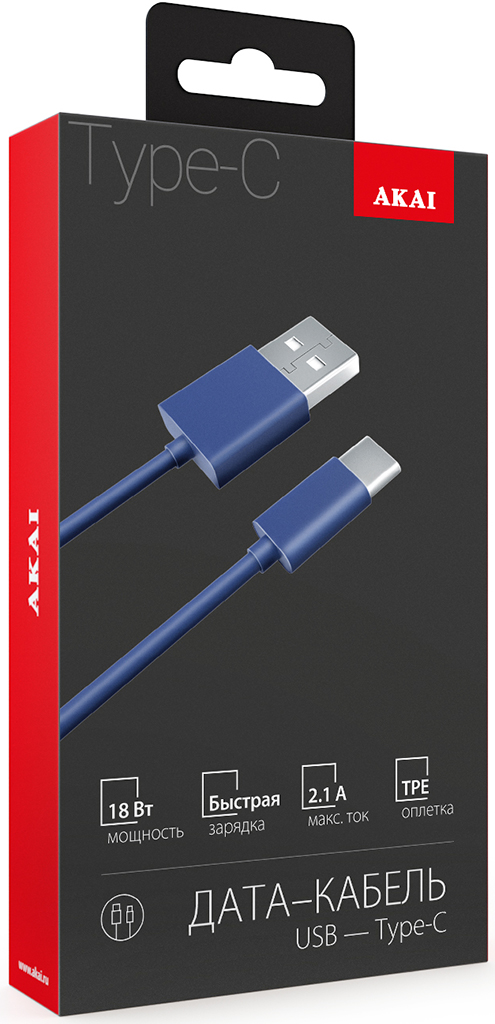 Кабель для зарядки планшетов и смартфонов с разъёмом Type-C, током до 2,1 А и передачи данных до 480 Мбит/с.