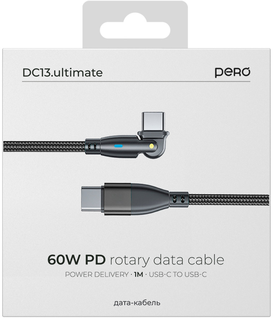 USB-кабель PERO DC16 Ultimate PD длинной 1,2 метра c 2 коннекторами USB-C имеет максимальную мощность 60 Вт. Он оптимально подходит для зарядки портативных устройств и быстрой передачи данных.