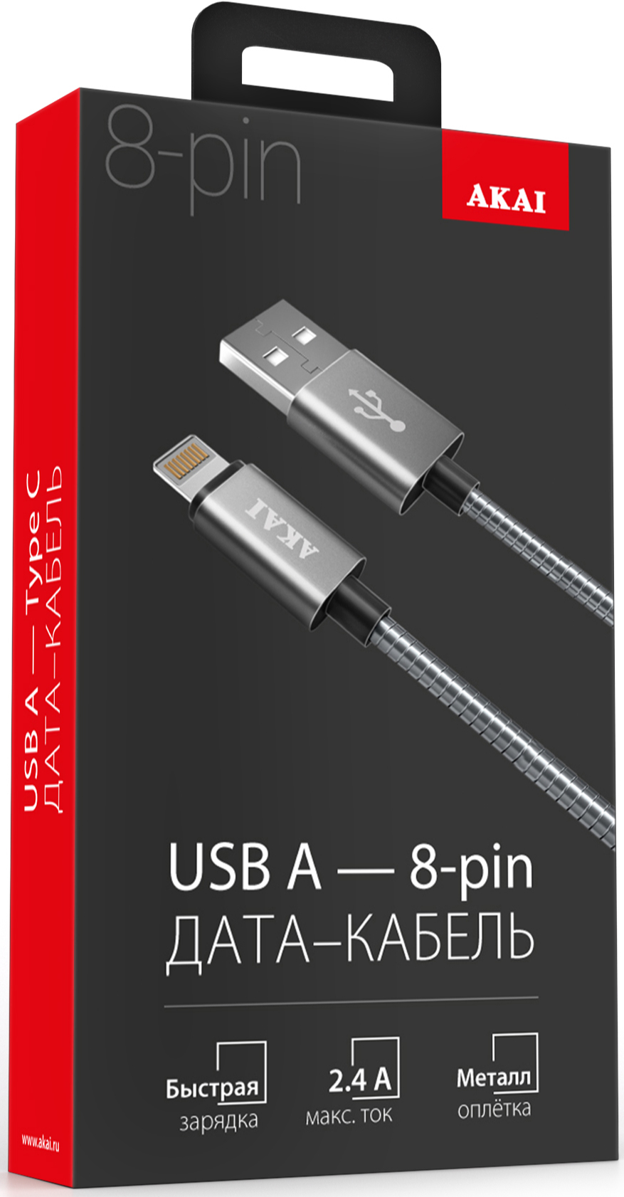 Кабель для зарядки планшетов и смартфонов Apple с разъёмом Lightning (8 pin). Быстрая зарядка — до 2,4 А, поддерживает передачу данных до 480 Мбит/с.