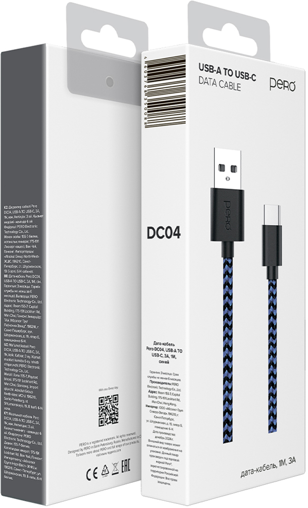 USB-кабель Pero DC-04 с пластиковыми коннекторами в тканевой оплетке комбинированного цвета поддерживает технологию быстрой зарядки. Пропускная способность — до 3 А.