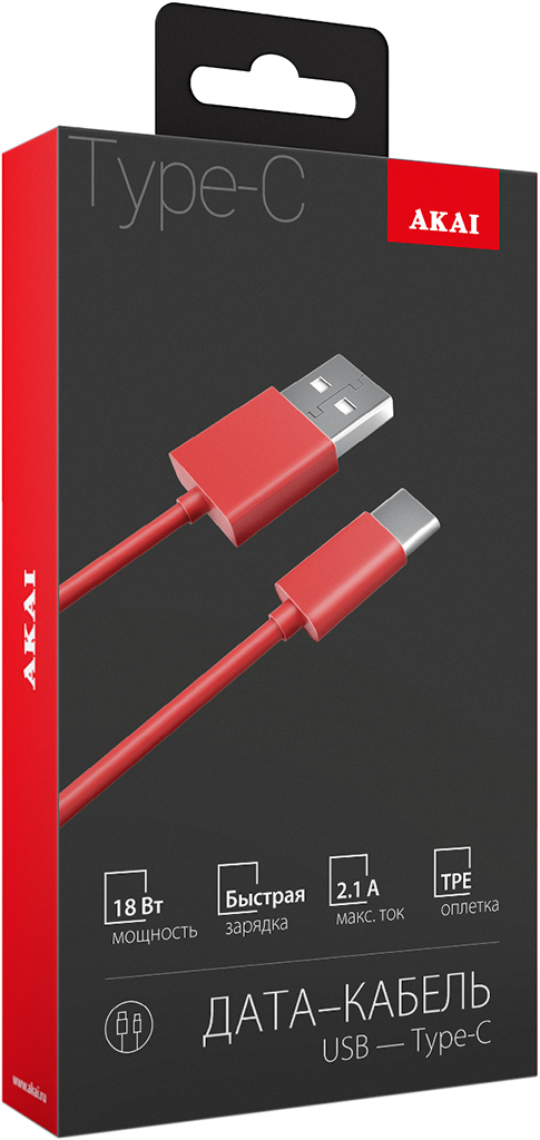 Кабель Akai CE-465R предназначен для зарядки планшетов и смартфонов Apple, оснащённых разъёмом USB Type-C, с током до 2,1 А, а также может осуществлять передачу данных на скорости до 480 Мбит/с.