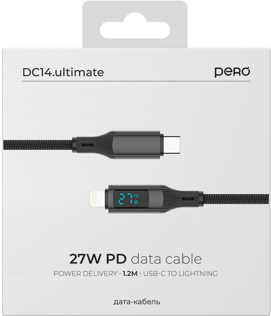 USB-кабель Pero DC14 предназначен для зарядки и подключения различных устройств, например, смартфонов, планшетов, наушников, имеющих разъём Lightning к компьютеру или ноутбуку с разъёмом USB-C. Аксессуар поддерживает быструю зарядку, его длина — 1,2 метра, а максимальная мощность — 27 Вт.