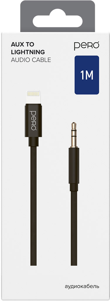 Аудиокабель Pero MC-02 длиной 1 метр оснащён металлическими коннекторами и предназначен для подключения аксессуаров с со стандартным штекером 3,5-мм к устройствам с разъёмом Lightning.