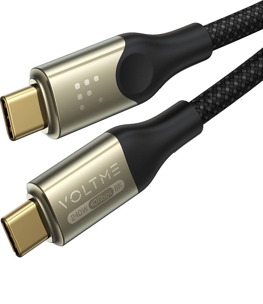Hi-Tech Универсальный кабель USB4.0 Type-C VOLTME Utron CTC 5A премиум класса с нейлоновой оплеткой. Предназначен для Быстрой зарядки гаджетов, передачи данных до 40гбит/с, подключения 8K/4K Мониторов, SSD дисков и других периферийных устройств. Подходит к USB-C зарядным устройствам, для Быстрой зарядки ноутбуков GalaxyBook Pro, смартфонов Samsung Galaxy, планшетов Galaxy Tab и наушников Galaxy Buds, внешних аккумуляторов, зарядных станций и других устройств. Оснащен E-Marker 2.0 чипом для быстрой и безопасной зарядки. Огнестойкость класса VW-1. Кабель диаметром 4.8 мм выдерживает более 25000+ изгибаний. Ресурс стального штекера более 10000+ циклов подключения/отключения. Поддерживает протоколы Быстрой зарядки PD3.1 до 240W, QC5, SAMSUNG SFC2.0 45W и другие.