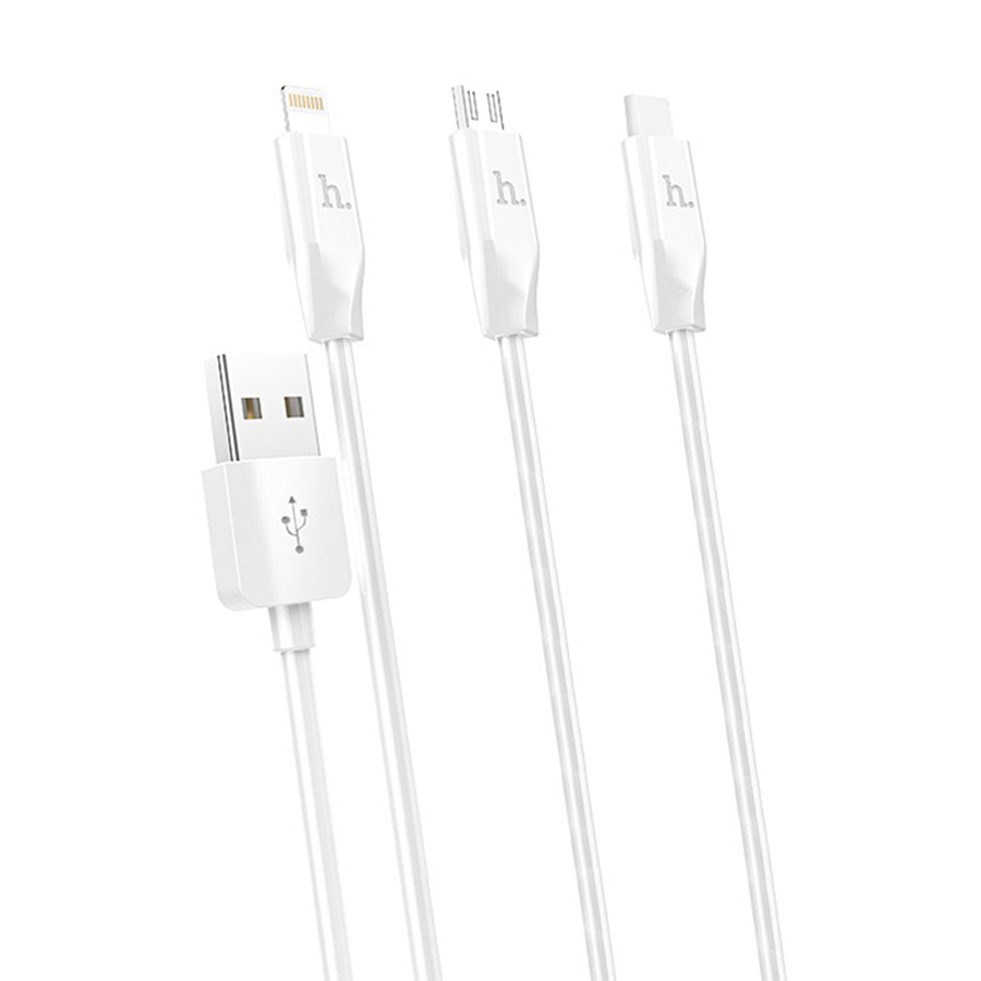 Кабель Hoco X1 (USB) 3 в 1 Lightning/Micro USB/Type-C 100см 2.4A (белый)