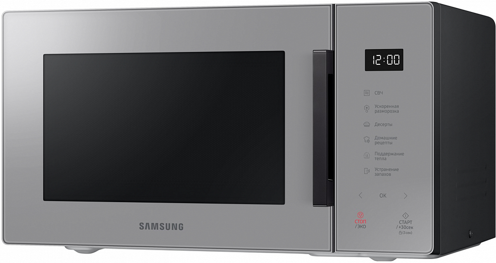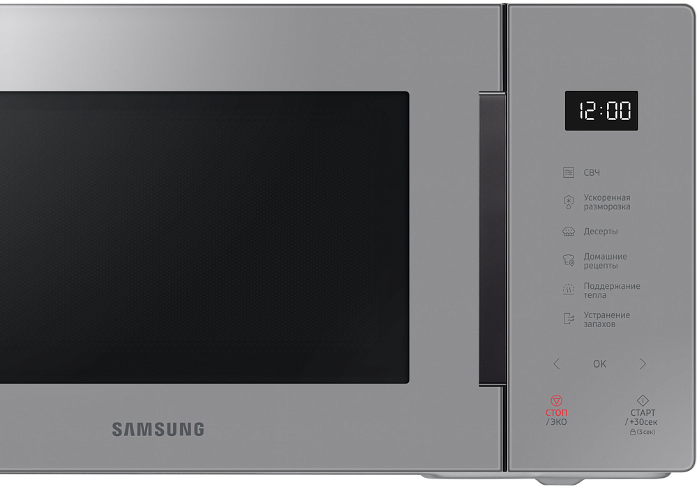 Идеально вписывается в ваш интерьер, удовлетворит любой вкус Выберите микроволновую печь, которая идеально впишется в дизайн вашей кухни и удовлетворит вашему вкусу. Улучшите вашу кухню с помощью элегантного дизайна и широкого выбора стильных цветов. Размораживайте продукты быстрее и эффективнее Размораживайте продукты эффективнее с функцией быстрой разморозки. Просто выберите продукт и вес, чтобы посчиталось оптимальное время для того чтобы разморозить продукт, не потеряв его полезные свойства. Больше стиля с новым дизайном Наслаждайтесь простым интуитивным управлением в одно касание и притягивающим минималистичным дизайном. На лицевой панели находится всего 6 сенсорных кнопок. Сделанные полностью из стекла они идеально смотрятся на микроволновой печи, создавая минималистичный дизайн. БИОкерамическое покрытие камеры - 10 лет гарантии БИОкерамика не покрывается царапинами и трещинами, за счет этого а гладкая поверхность легко чистится. БИОкерамическое покрытие камеры Samsung одобрено институтом Хоэнштейн, прочная поверхность защищает от бактерий на 99.9%. Износостойкость и долговечность керамического покрытия делают его в 7 раз более устойчивым к царапинам и ржавчине. Таким образом, сохраняя покрытие при длительном использовании. Совершенная готовка Уникальная и инновационная система распределения микроволн помогает достичь большего прогресса в готовке. Микроволны распределяются по 3 направлениям, благодаря трем антеннам внутри печи. Микроволны проникают в пищу под разными углами, за счет чего достигается лучший опыт приготовления. Точная настройка Приготовление без рецептов и угадывания. Режим Автоготовки имеет в своем распоряжении выбор из самых популярных блюд с предустановленным временем, режимом и температурой. Просто выберите тип и вес и всё будет идеально.