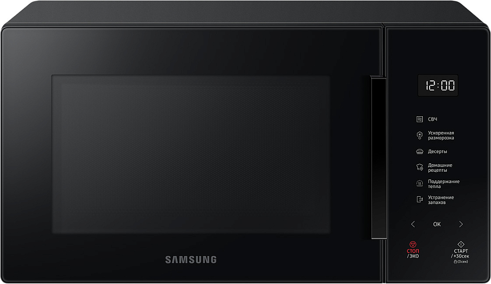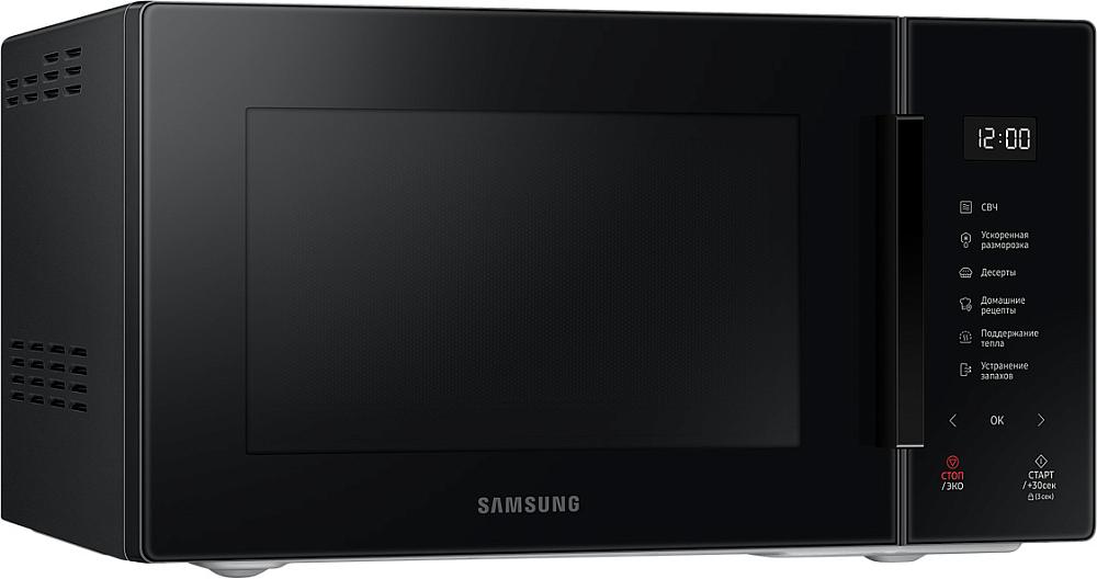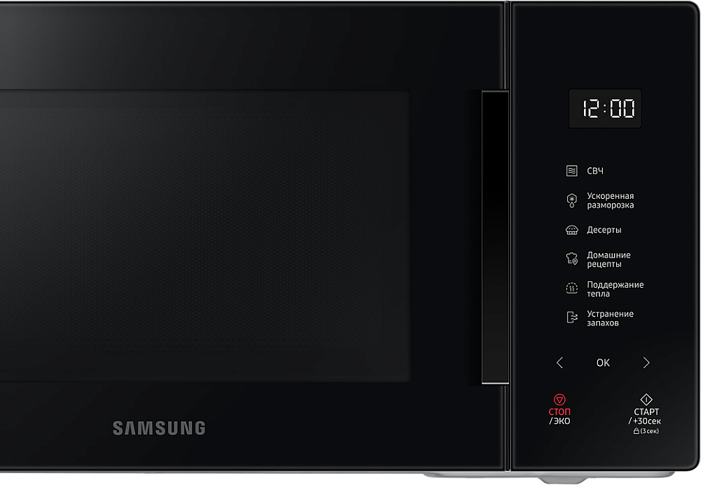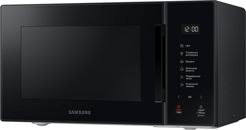 Идеально вписывается в ваш интерьер, удовлетворит любой вкус Выберите микроволновую печь, которая идеально впишется в дизайн вашей кухни и удовлетворит вашему вкусу. Улучшите вашу кухню с помощью элегантного дизайна и широкого выбора стильных цветов. Размораживайте продукты быстрее и эффективнее Размораживайте продукты эффективнее с функцией быстрой разморозки. Просто выберите продукт и вес, чтобы посчиталось оптимальное время для того чтобы разморозить продукт, не потеряв его полезные свойства. Больше стиля с новым дизайном Наслаждайтесь простым интуитивным управлением в одно касание и притягивающим минималистичным дизайном. На лицевой панели находится всего 6 сенсорных кнопок. Сделанные полностью из стекла они идеально смотрятся на микроволновой печи, создавая минималистичный дизайн. БИОкерамическое покрытие камеры - 10 лет гарантии БИОкерамика не покрывается царапинами и трещинами, за счет этого а гладкая поверхность легко чистится. БИОкерамическое покрытие камеры Samsung одобрено институтом Хоэнштейн, прочная поверхность защищает от бактерий на 99.9%. Износостойкость и долговечность керамического покрытия делают его в 7 раз более устойчивым к царапинам и ржавчине. Таким образом, сохраняя покрытие при длительном использовании. Сохраняет энергию Режим экономии ECO Mode обеспечивает минимальное энергопотребление в режиме ожидания, что уменьшит ваши счета за электричество. Точная настройка Приготовление без рецептов и угадывания. Режим Автоготовки имеет в своем распоряжении выбор из самых популярных блюд с предустановленным временем, режимом и температурой. Просто выберите тип и вес и всё будет идеально.