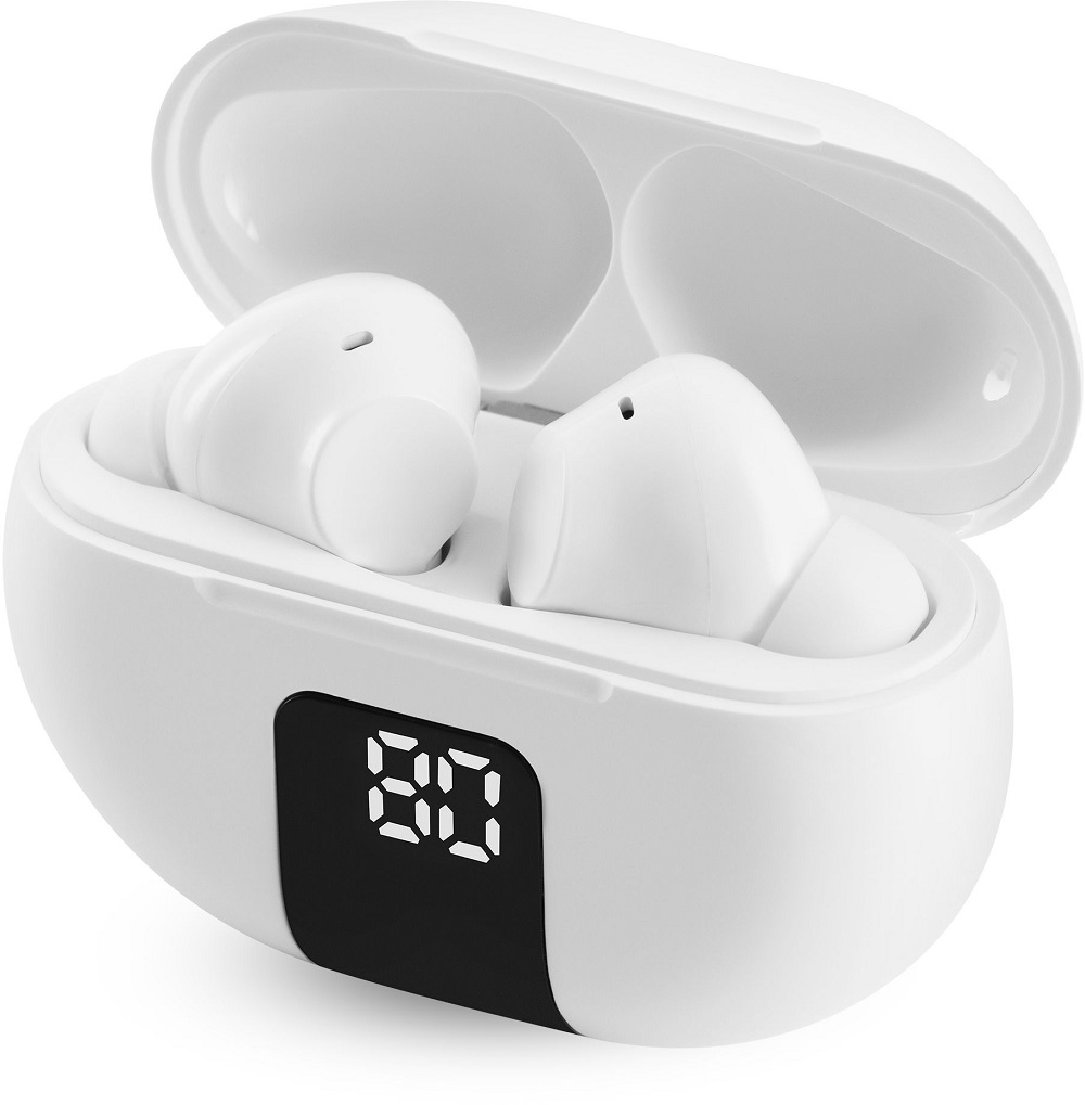 музыки, просмотра фильмов и звонков. Беспроводные наушники имеют широкий диапазон воспроизводимых частот и минималистичный дизайн с удобным дисплеем. В комплекте есть сменные амбушюры.