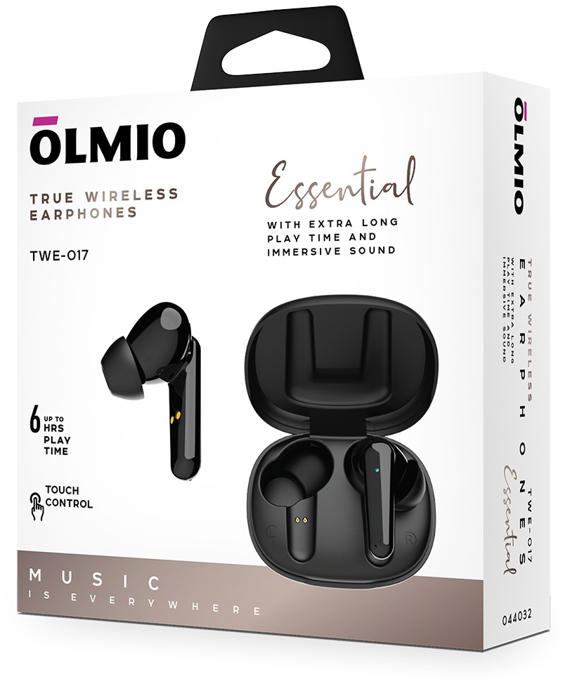 Наушники TWS Olmio TWE-17 сочетают в себе стильный дизайн и продвинутые технологии. Беспроводные наушники оснащены сенсорной кнопкой. Для ответа на входящий звонок нажмите на кнопку наушника и начинайте разговор. Если же входящий звонок необходимо сбросить, просто нажмите и удерживайте кнопку наушника 1-2 секунды. Беспроводные наушники TWE-017 позволяют прослушивать и перематывать треки, изменять громкость. Емкость каждого наушника 40 mAh. В активном режиме беспроводные наушники TWE-017 работают до 6 часов.