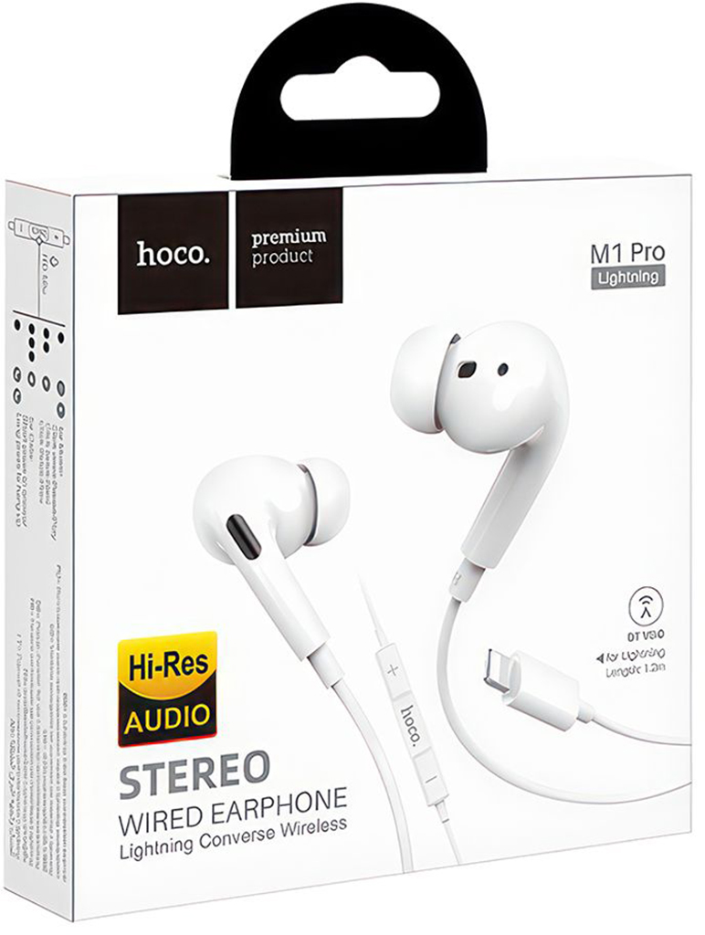 Гарнитура HOCO M1 Pro разработана специально для устройств Apple c разъёмом Lightning 8-pin. Анатомическая форма вкладышей обеспечивает комфорт даже при длительном ношении. Встроенный пульт управления позволяет переключать треки, регулировать громкость, отвечать на звонки, управлять воспроизведением. Микрофон передает качественный звук без помех и шумов. Гибкий провод 120 см — оптимальная длина для свободы движений.