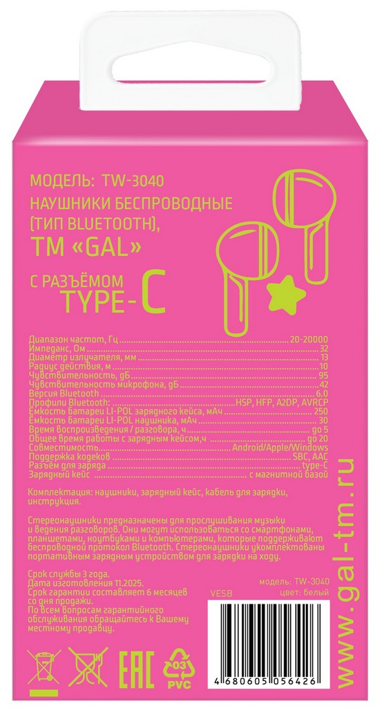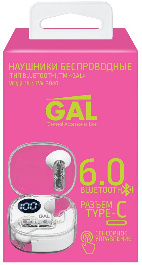 Беспроводные стереонаушники GAL TW-3040 со встроенным микрофоном совместимы с Android/IOS/Windows. Полное отсутствие проводов, сенсорное управление.