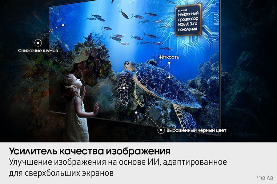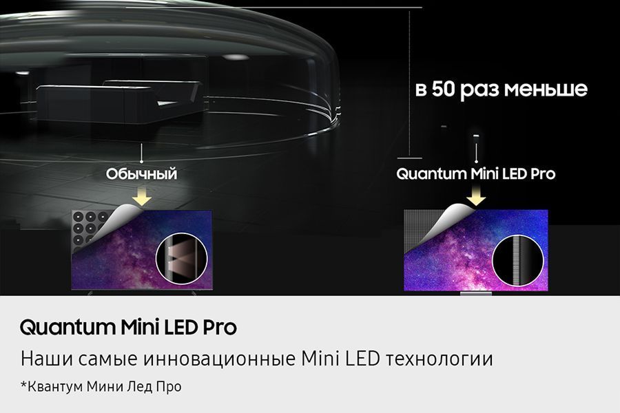Реалистичные цвета и максимальная яркость Благодаря технологии Quantum Matrix Slim Samsung Neo QLED 4K QN90F демонстрирует идеальную цветопередачу, проверенную экспертами Pantone. Каждый оттенок, будь то яркий пейзаж или тон кожи, воспроизводится с максимальной точностью. Минимализм в дизайне, максимум впечатлений Дизайн AirSlim делает Samsung Neo QLED 4K QN90F невероятно тонким и легким в установке. Телевизор практически растворяется в интерьере, оставляя только изображение. Интеллектуальный звук для полного погружения Технология Object Tracking Sound Lite отслеживает источники звука в кадре, создавая эффект присутствия. Звук движется вслед за объектами на экране, усиливая реалистичность происходящего. Функция Q-Symphony объединяет динамики телевизора и саундбара, создавая гармоничное звучание.