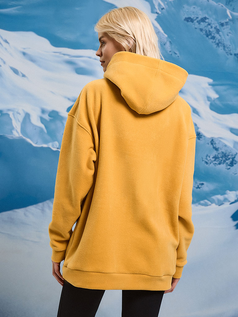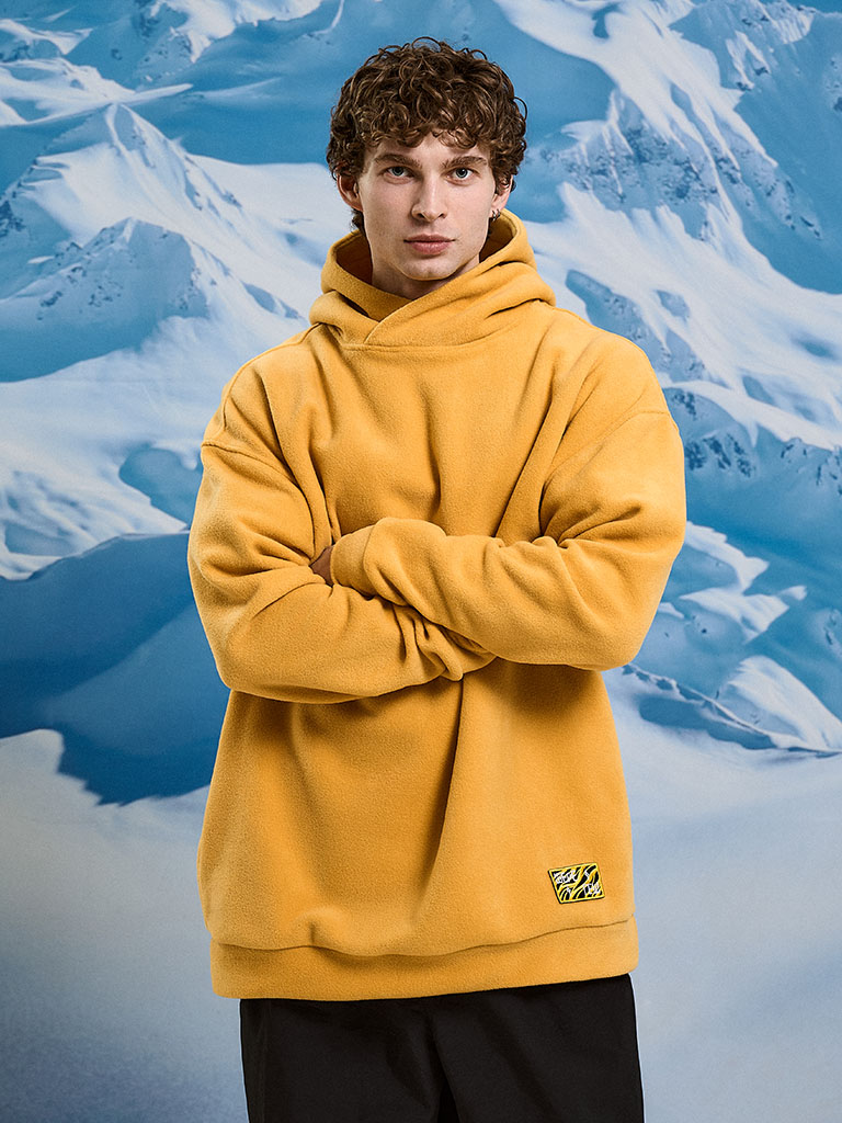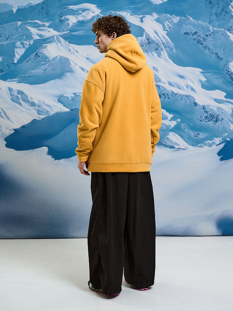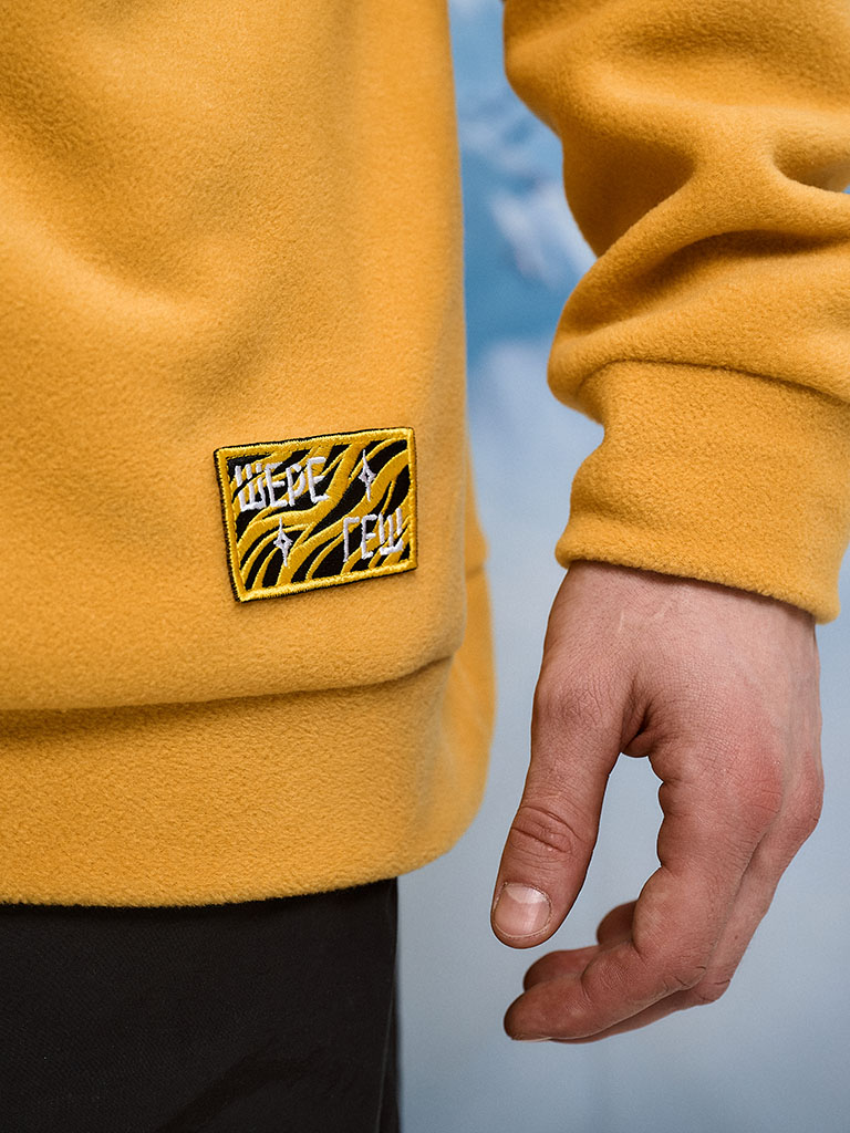 Худи MySiberia — ярко‑жёлтое, очень мягкое и удобное, из тёплого флиса. Садится свободно, двигается вместе с вами — накинул и поехал. Худи с уникальной нашивкой с принтом сибирского художника — вещь с характером. Видно издалека — на склоне и в городе.