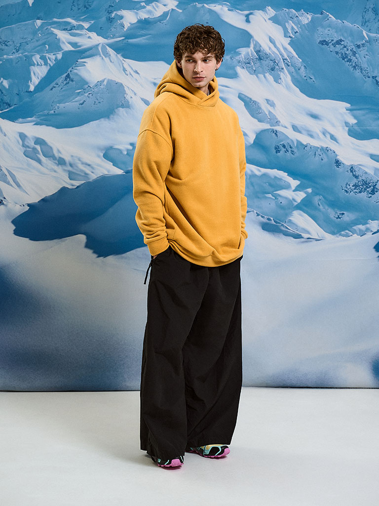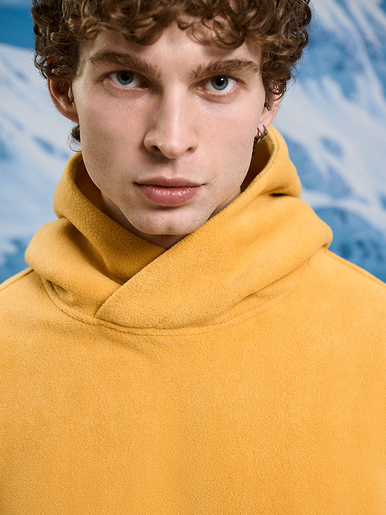 Худи MySiberia — ярко‑жёлтое, очень мягкое и удобное, из тёплого флиса. Садится свободно, двигается вместе с вами — накинул и поехал. Худи с уникальной нашивкой с принтом сибирского художника — вещь с характером. Видно издалека — на склоне и в городе.