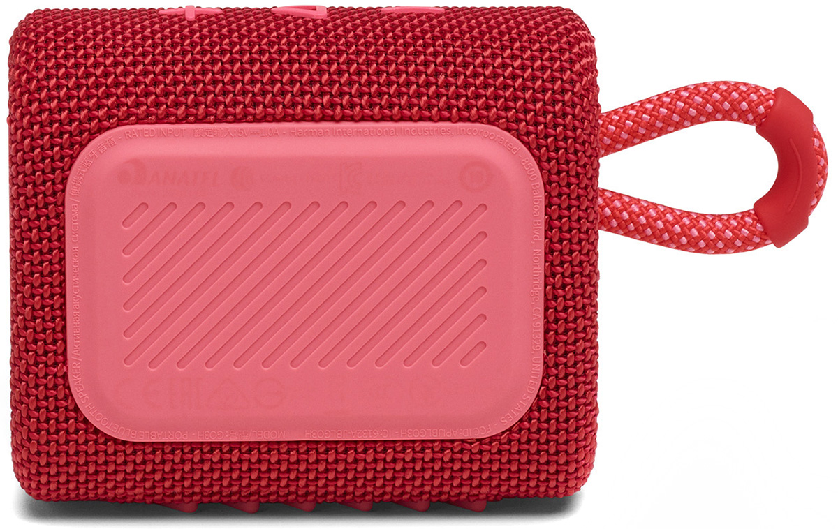 Компактная портативная колонка JBL GO 3 выполнена из металла и пластика с тканевой водоотталкивающей отделкой, защищающей от попадания влаги по стандарту IP67.