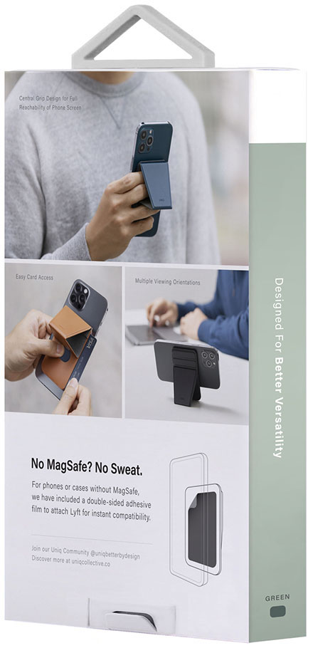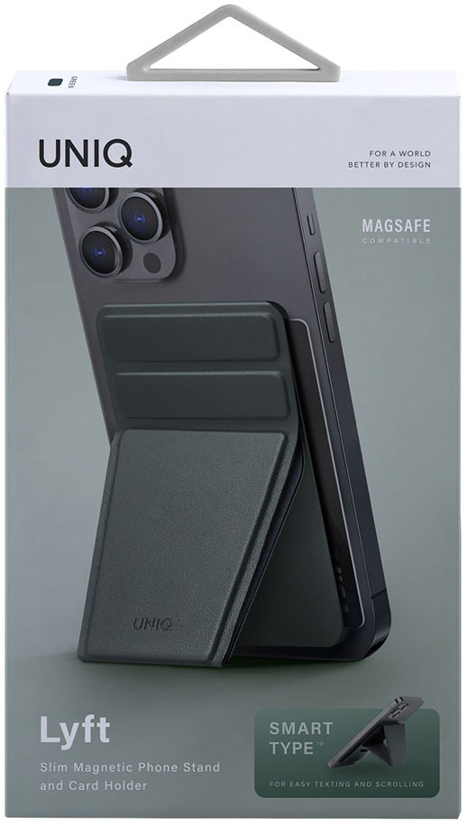 в подставку, как в портретной, так и ландшафтной ориентации — благодаря этому можно смотреть фильмы, общаться по видеосвязи и не держать постоянно телефон в руках. Компактный картхолдер Uniq LYFT Magnetic оснащен карманами, в которых можно хранить карты — они не потеряются и всегда будут под рукой.