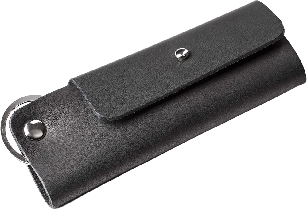 удобного хранения и транспортировки связки ключей. Конструкция аксессуара позволяет изолировать их от содержимого сумки, предотвращая возникновение царапин на телефоне или затяжек, разрезов подкладки рюкзака, портфеля или сумки. Ключница изготовлена из цельного куска натуральной плотной кожи и не имеет швов. К чехлу прочно крепится кольцо, на которое прикреплены 4 карабина для ключей. Закрывается ключница на кобурную кнопку. Размер аксессуара 11.5 х 5 см.