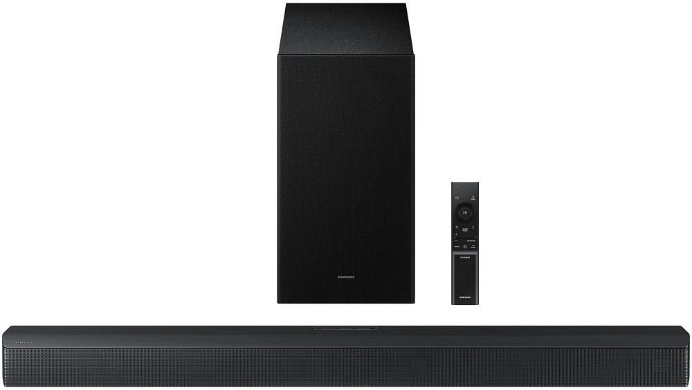 3.1-канальный звук Окунитесь в объемный 3.1-канальный звук, усиленный встроенными боковыми динамиками, не забудьте про сабвуфер в комплекте, который поддерживает режим усиления басов. Технология Q-Symphony Благодаря технологии Q-Symphony ИИ разделяет голос и фоновые звуки для их воспроизведения через оптимальный канал. Диалоги становятся более четкими, динамики телевизора и саундбар работают в абсолютной синергии, погружая в трехмерное звучание. Захватывающий звук, движущийся вокруг вас Dolby Audio и DTS Virtual:X создают объемный 3D-звук, как, например, ощущение высоты, с помощью технологий обработки звука — без необходимости использования направленных вверх динамиков. Технология Adaptive Sound Когда каждая сцена звучит так, как должна. Саундбар распознаёт, что вы смотрите, и автоматически регулирует настройки аудио, чтобы вы могли наслаждаться чистыми голосами и четкостью звуков. Усиление голоса Наслаждайтесь четкими диалогами в ваших любимых телешоу и фильмах. Режим усиления голоса Voice Enhance улучшает качество речи и оптимизирует настройки эквалайзера для большей четкости. Игровой режим Получите конкурентное преимущество с игровым режимом. Настройки звука оптимизируются автоматически, вам остается только подключиться и играть. При этом технология устранения помех помогает точно определить местоположение врага благодаря исключению посторонних звуков. Ночной режим Смотрите телевизор ночами, никого не разбудив. В ночном режиме басы подавляются, чтобы снизить громкость и обеспечить мягкое, но четкое звучание. Беспроводное подключение компонентов Комплект беспроводной тыловой акустики Wireless Rear Speaker Kit дополняет саундбар, обеспечивая звучание, как в кинотеатре. Подключение устройств через HDMI ARC Саундбар оснащен портом HDMI ARC, к которому можно подключать внешние устройства и наслаждаться реалистичным насыщенным звуком без потери в качестве. Двойное удовольствие с двумя смартфонами Используйте Bluetooth вашего саундбара, чтобы подключить до двух смартфонов одновременно и переключаться между их плейлистами. Беспроводное подключение саундбара к телевизору Надоели спутанные кабели и провода? Просто подключите саундбар к телевизору через Bluetooth и наслаждайтесь беспроводной передачей звука. Единый пульт для полного контроля Ваш пульт Samsung подходит не только для телевизора. Управляйте с него такими функциями саундбара, как включение/выключение, громкость и звуковые эффекты.