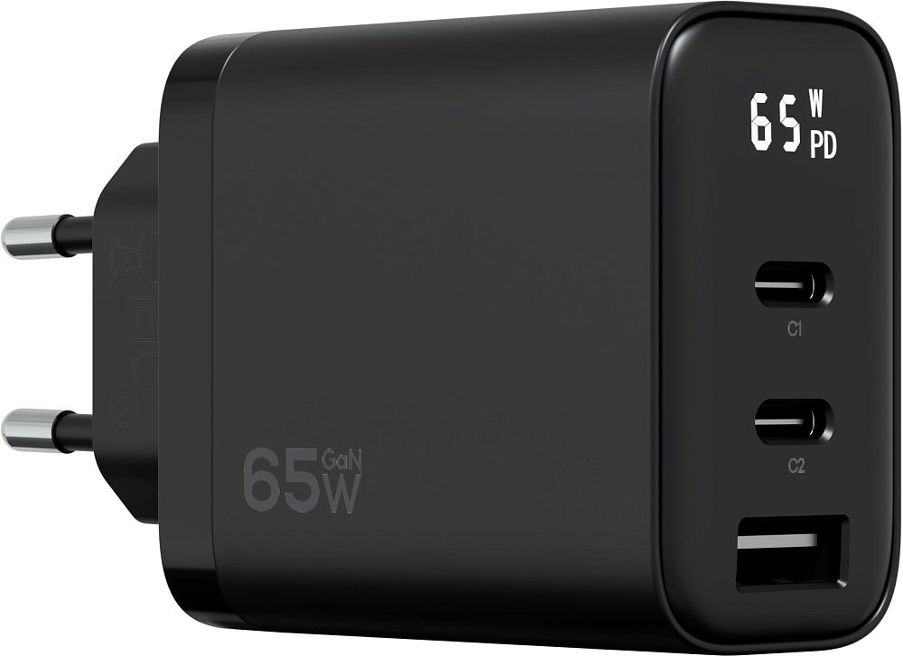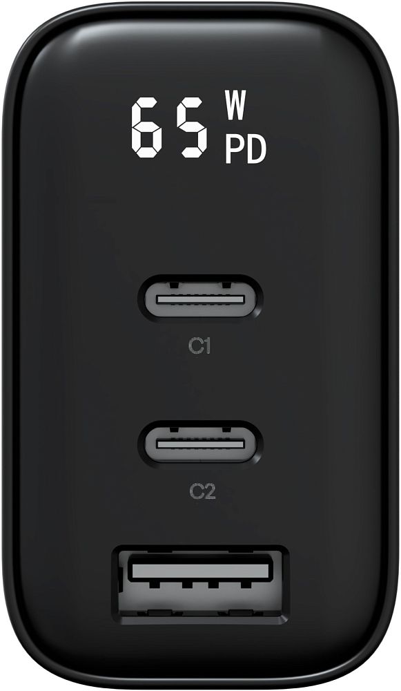Вход: 110-240V, ~50/60Hz, 1.5A Выход USB-C1: 5V/3A, 9V/3A, 12V/3A, 15V/3A, 20V/3.25A (65W Max); USB-C2: 5V/3A, 9V/2.22A, 12V/1.67A (20W Max); USB-C1 PPS: 5-11V/5A, 5-21V/3A (63W Max); USB-A: 5V/3A, 9V/2A, 12V/1.5A (18W Max); USB-C1+C2: 45W+20W; USB-C1+A: 45W+18W; USB-C2+A: 15W; USB-C1+C2+A: 45W+15W; Особенности: Встроенный дисплей с индикацией текущей нагрузки, три порта, поддержка PPS, PD3.0, QC4.0+, AFC, FCP, SCP, APPLE2.4A, DCP, MTK PE+, компактный корпус из огнестойкого поликарбоната.