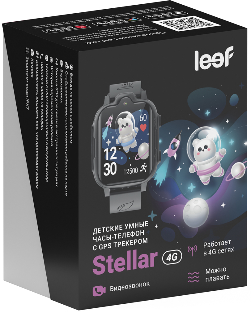 Leef Stellar — это современные детские смарт-часы, выполненные в стильном дизайне и оснащённые множеством полезных функций. В модели установлен круглый сенсорный экран размером 1,69 дюйма с разрешением 240x240 пикселей. Среди функций есть: видеозвонок, голосовой чат, шагомер, мониторинг пульса, контроль геозон, кнопка SOS. Умные часы Leef Stellar поддерживают стандарт сотовой связи 4G LTE для надёжной связи и используют GPS, A-GPS, LBS и Wi-Fi для точной геолокации.