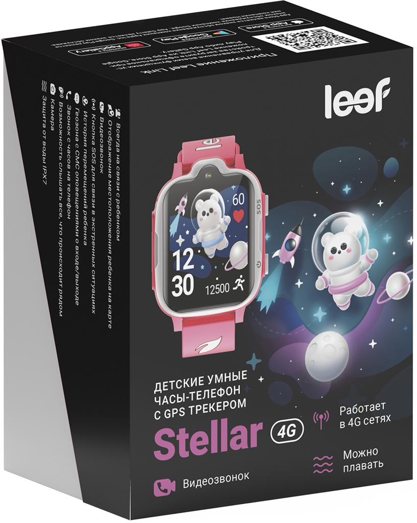 Leef Stellar — это современные детские смарт-часы, выполненные в стильном дизайне и оснащённые множеством полезных функций. В модели установлен круглый сенсорный экран размером 1,69 дюйма с разрешением 240x240 пикселей. Среди функций есть: видеозвонок, голосовой чат, шагомер, мониторинг пульса, контроль геозон, кнопка SOS. Умные часы Leef Stellar поддерживают стандарт сотовой связи 4G LTE для надёжной связи и используют GPS, A-GPS, LBS и Wi-Fi для точной геолокации.